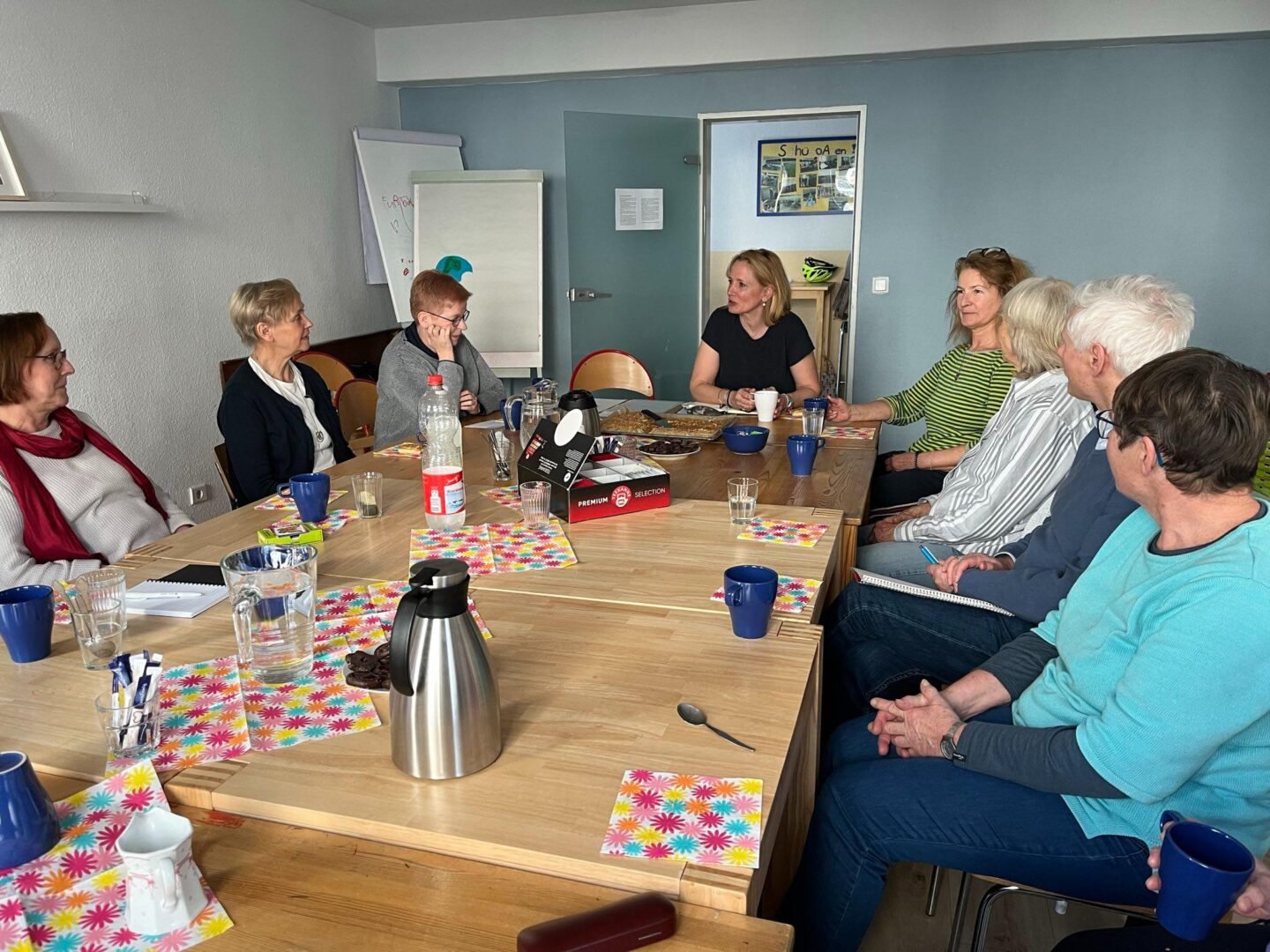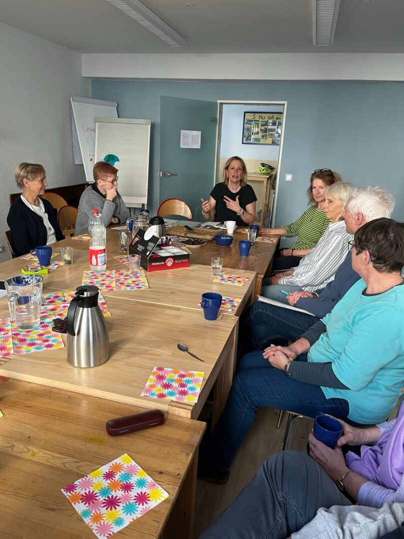 Wieder einmal hat sich ein großer Kreis von Ehrenamtlichen, die Vormittags an Schulen gehen, in den schönen Räumlichkeiten von TABULA in der Kavalleriestraße getroffen. Bei Kaffee und Kuchen gab es eine Vorstellungsrunde und einen gegenseitigen Austausch. Im Anschluss haben Susan Balz (Verantwortliche Ehrenamt) und Gerlinde Timmermann (Vorsitzende) die geplanten Aktivitäten und Angebote für die Ehrenamtlichen im Jahr 2024 vorgestellt. Beispiele sind ein Theaterbesuch mit Patenkindern, ein Besuch der Kinderbuchhandlung „Kronenklauer“ sowie verschiedene Schulungen und Fortbildungen.