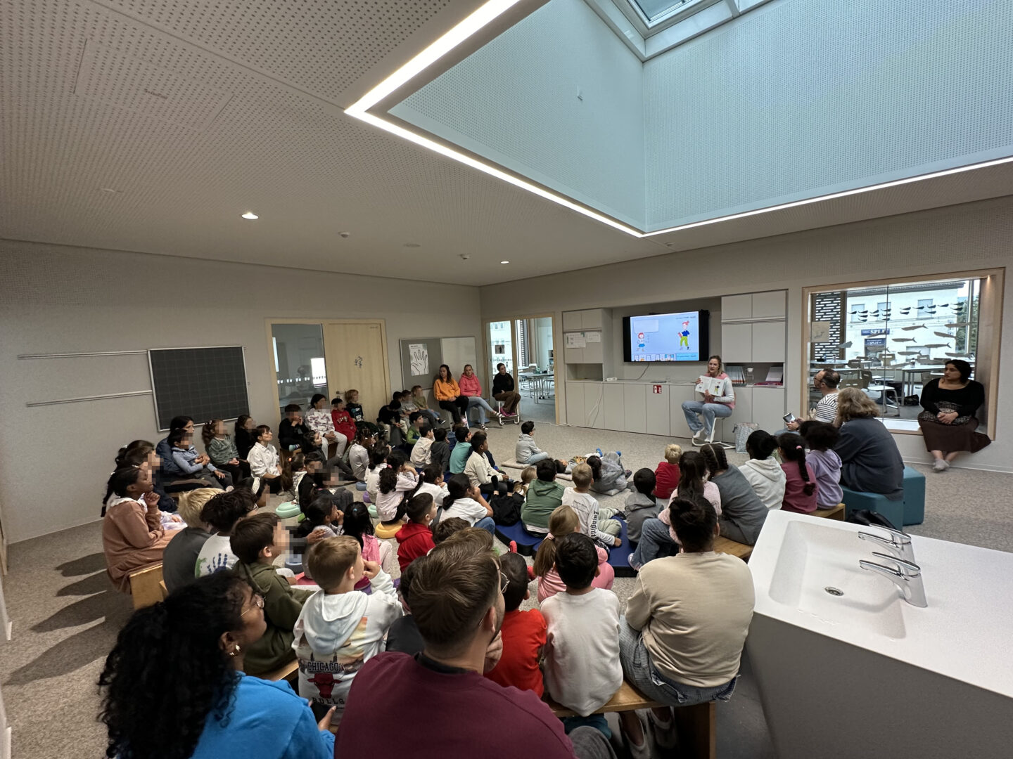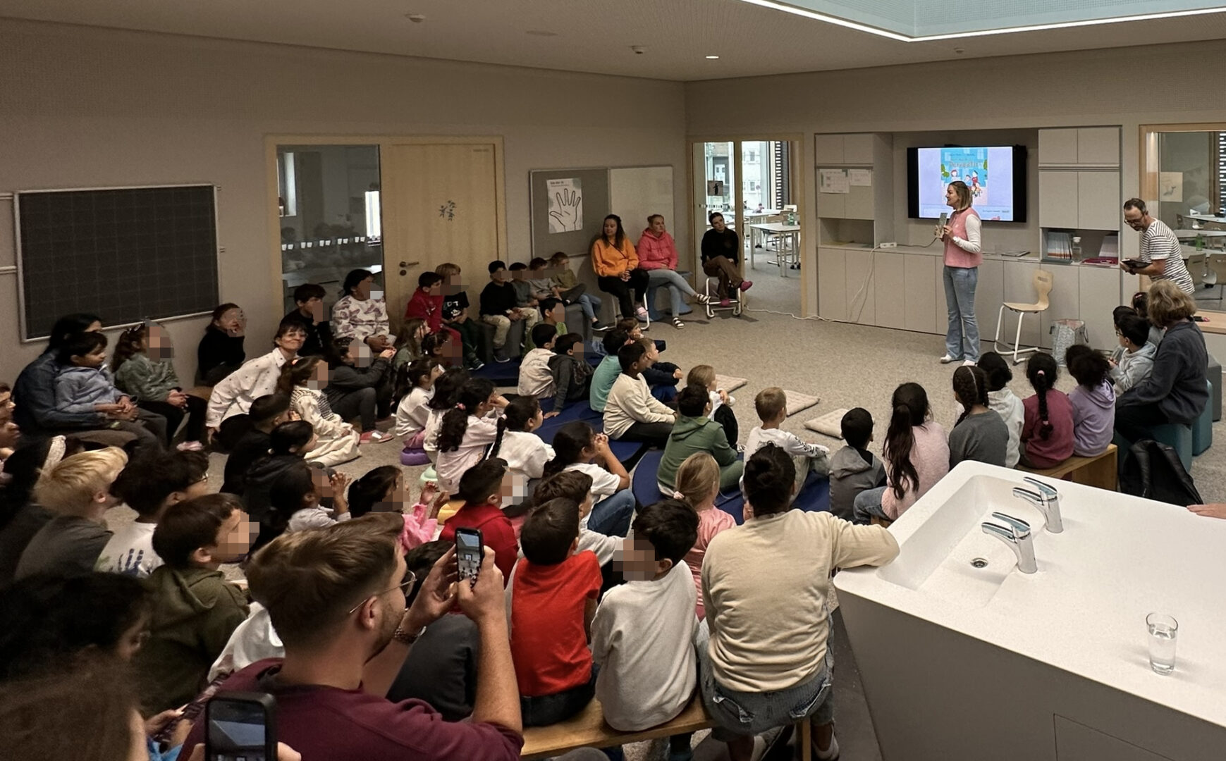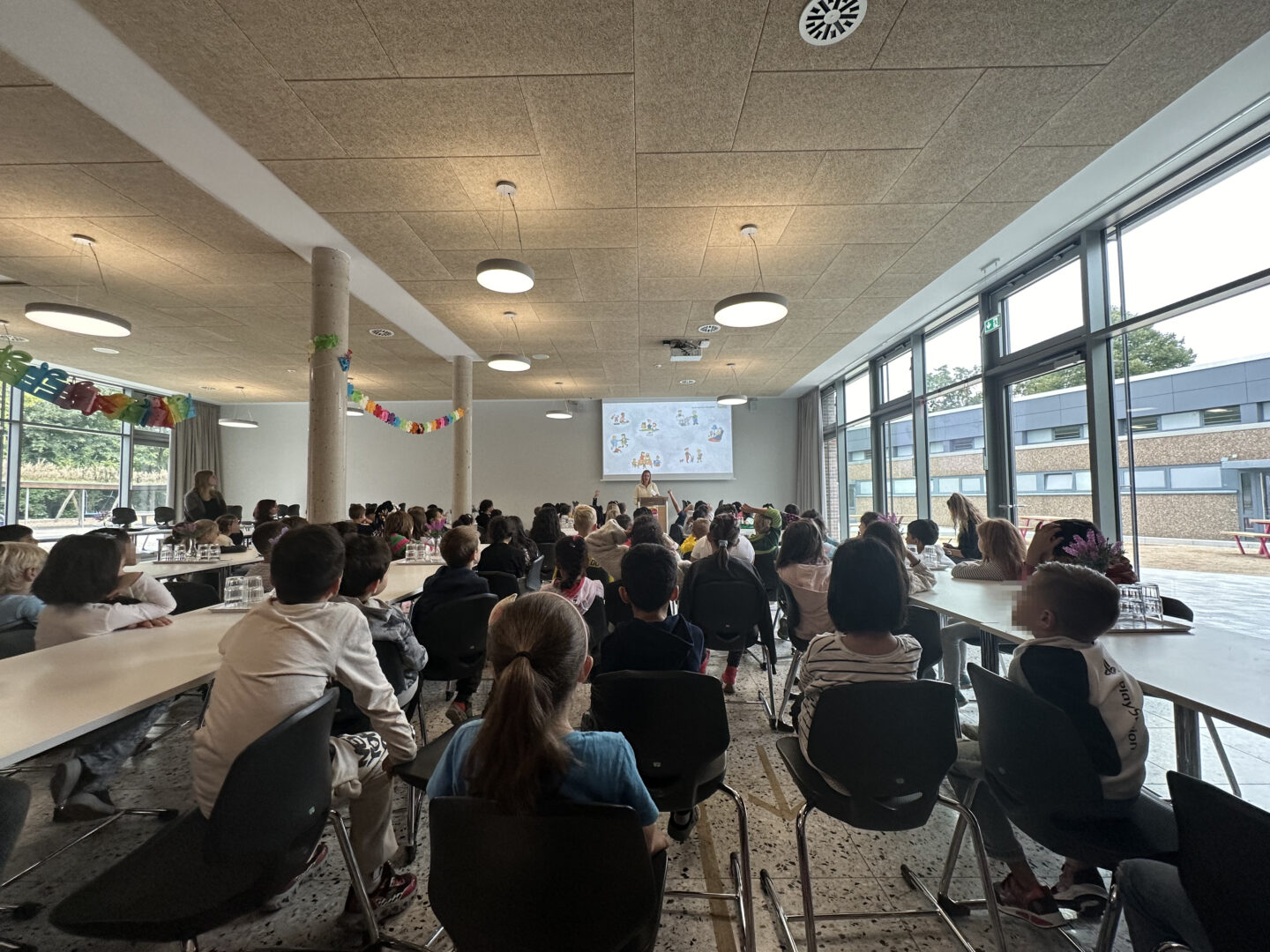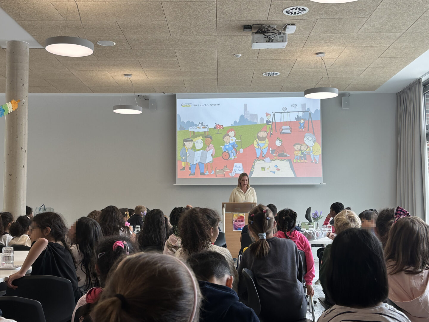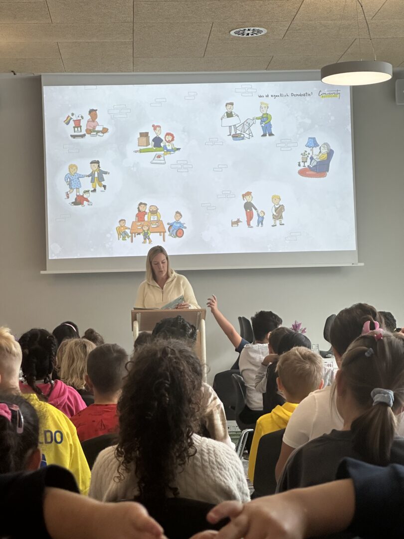 Die interaktiven Lesungen mit der Autorin Tina Ruthe fanden am 16.09. in der Rußheideschule, am 24.09. in der Hellingskampschule und am 25.09. in der Grundschule Brake statt. So konnten insgesamt 350 Kinder aus 15 Klassen der Jahrgangsstufen 1/2 spielerisch an das Thema Demokratie herangeführt werden. Während der Lesung durften die Kinder demokratisch mit Plastikorangen für einen von 2 Vorschlägen (Spielplatz oder Gemüsebeet?) stimmen und hatten sehr viel Spaß dabei. Am Ende gab es die Möglichkeit Fragen an Tina Ruthe zu stellen. Diese Möglichkeit wurde rege genutzt. Nach einem großen Applaus für die Autorin bekam jede Klasse noch ein handsigniertes Exemplar des Buches von ihr überreicht.
