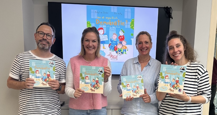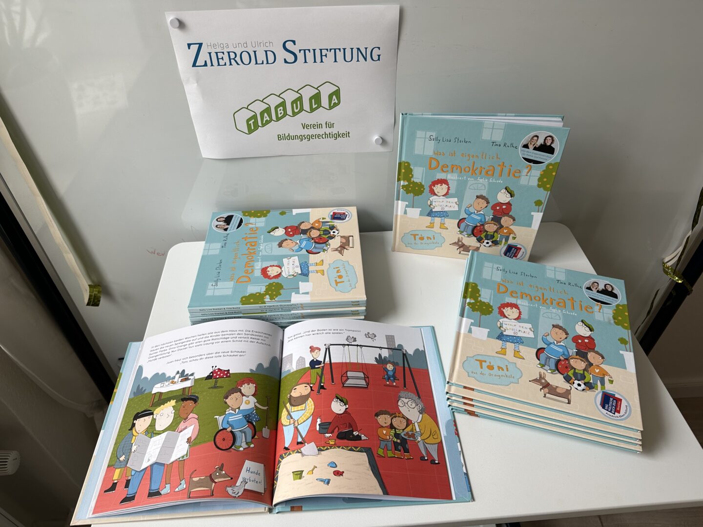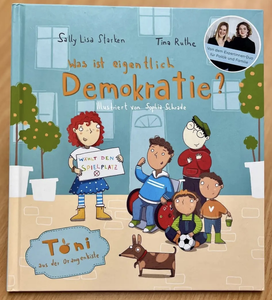 In dem Buch „Was ist eigentlich Demokratie? Toni aus der Orangenkiste“ zieht Toni mit ihrer Mama Carla in das Wohnhaus „die Orangenkiste“ in „Manderinchenfelden“. Hier lernen die Kinder durch spannende Erlebnisse in der Hausgemeinschaft die Wichtigkeit unserer Demokratie kennen.